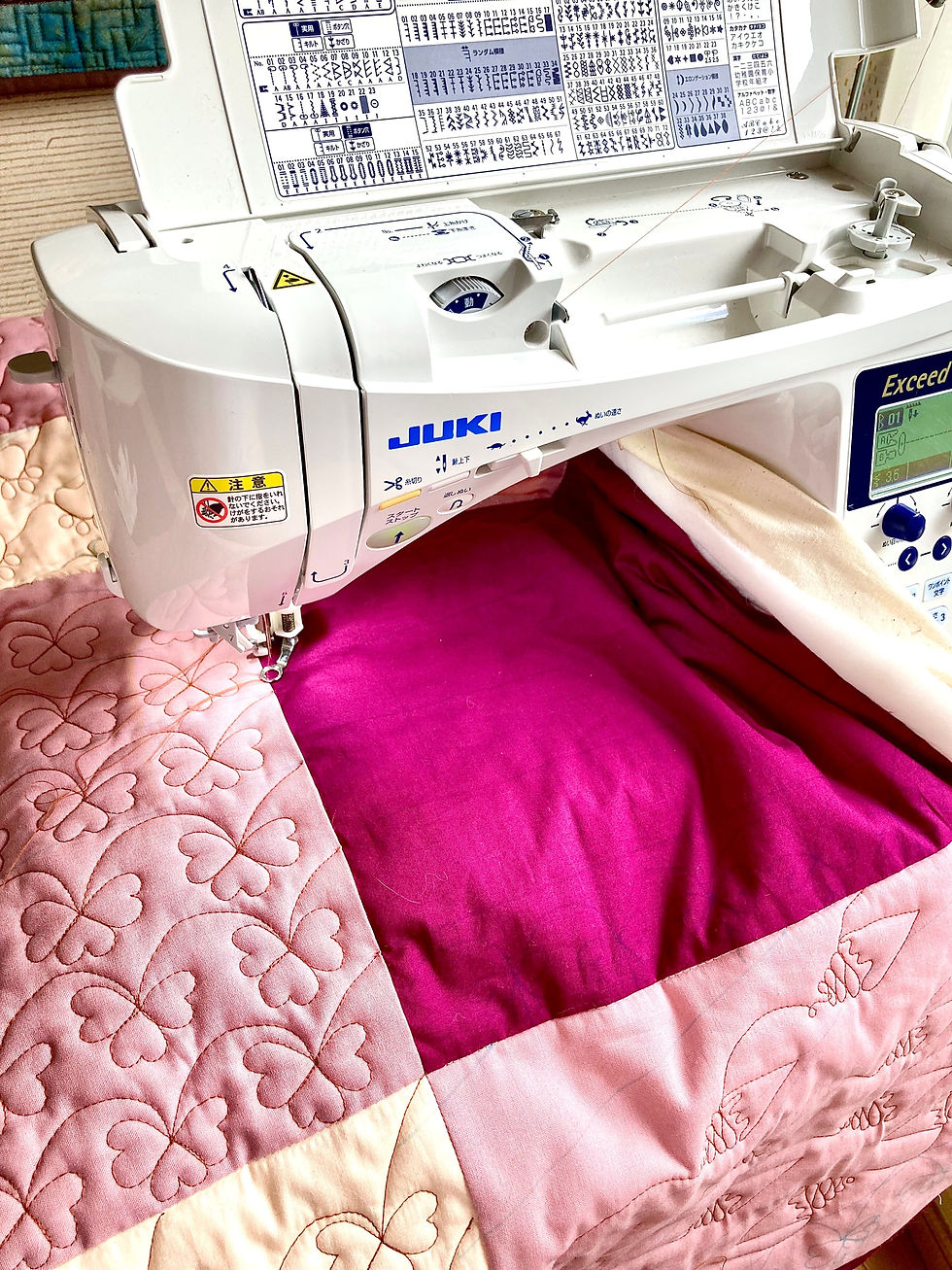 If you have seen the video tutorial on my YouTube channel, you know that I'm quilting this using the edge to edge technique instead of meandering style, which is common to many FMQ tutorials. The reason why I came up with this method is because meandering is quite difficult for beginners to decide the quilting path for the first time, which most of the time end up with bad spacing or even got stuck on an area, which is quite my experience.